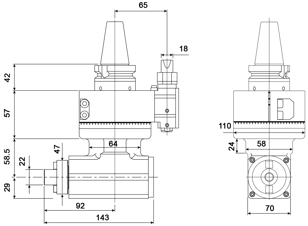 07038 - CABEÇOTE ÂNGULAR 90º - MAS 403 - BT40 - PORTA FRESA - LIGHT - AG90-22-58