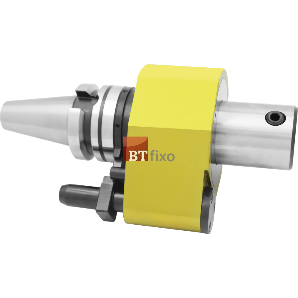 Porta barra Weldon com refrigeração lateral, foi desenvolvido para ser utilizado em máquinas que não possuem sistema de refrigeração interna. Através do dispositivo “stopper block” para fixação do ponto de alimentação do fluido (desenho disponível) que será alimentado com a refrigeração externa da máquina e assim transferindo para a refrigeração interna do cone e consequentemente a passagem interna pela ferramenta de corte.